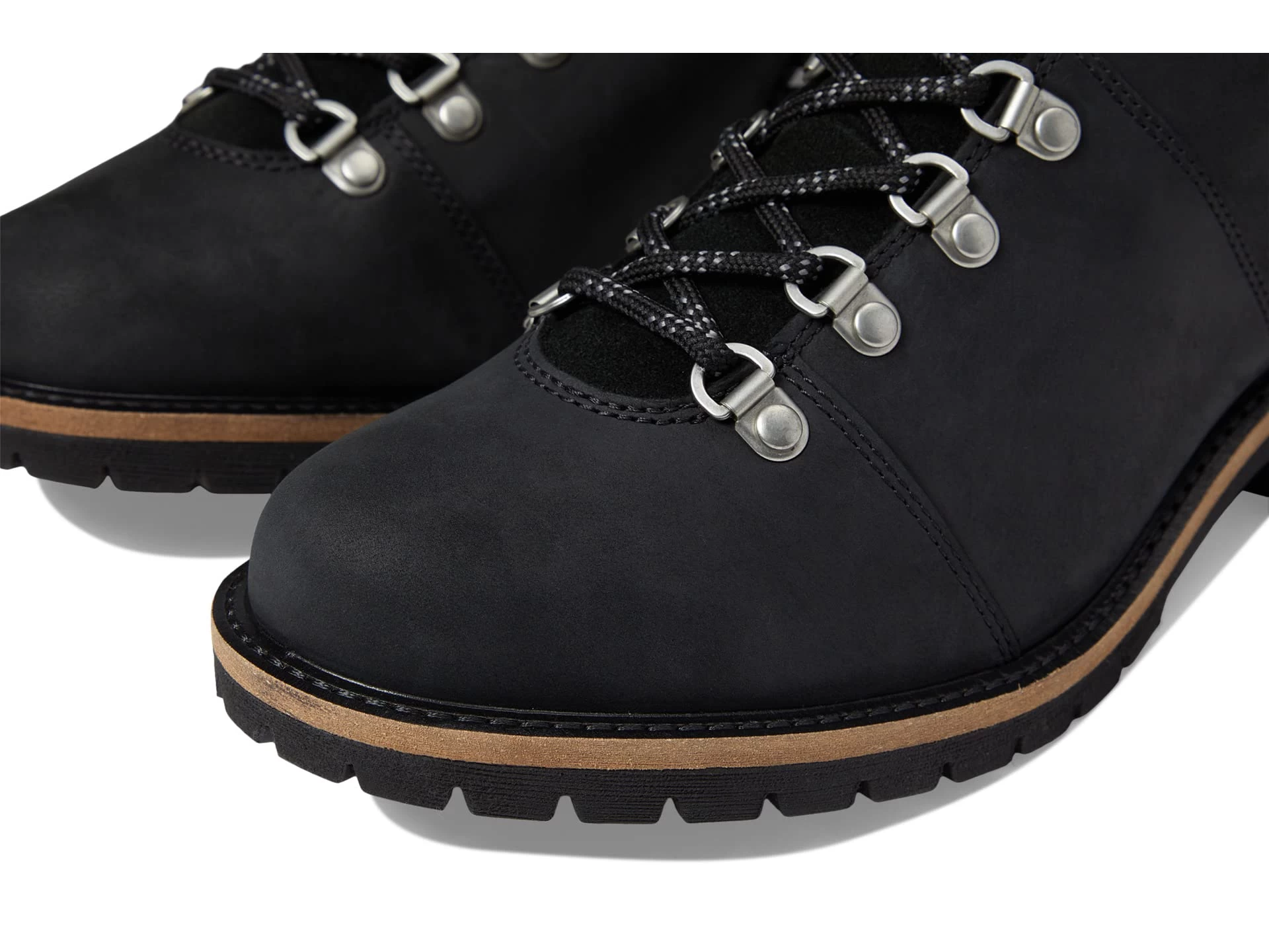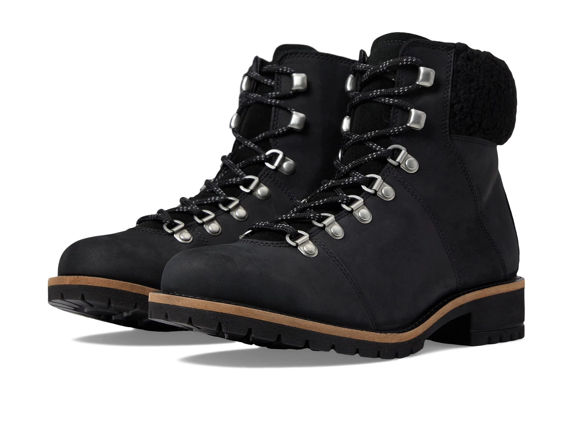 - Round toes and lugged block heels.